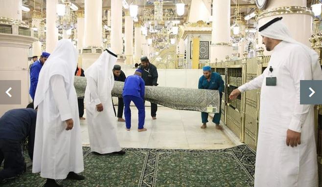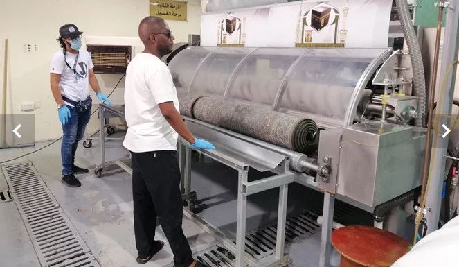 «نایف الجهادی»،رئیس بخش فرش و نظارت در مسجد الحرام گفت که کارگران از یک دستگاه خاص برای زدودن گرد و غبار از قالیچه ها استفاده می کنند و سپس عطرها و شامپوهای محیط زیستی را قبل از آبکشی قالیچه ها به کار می برند.