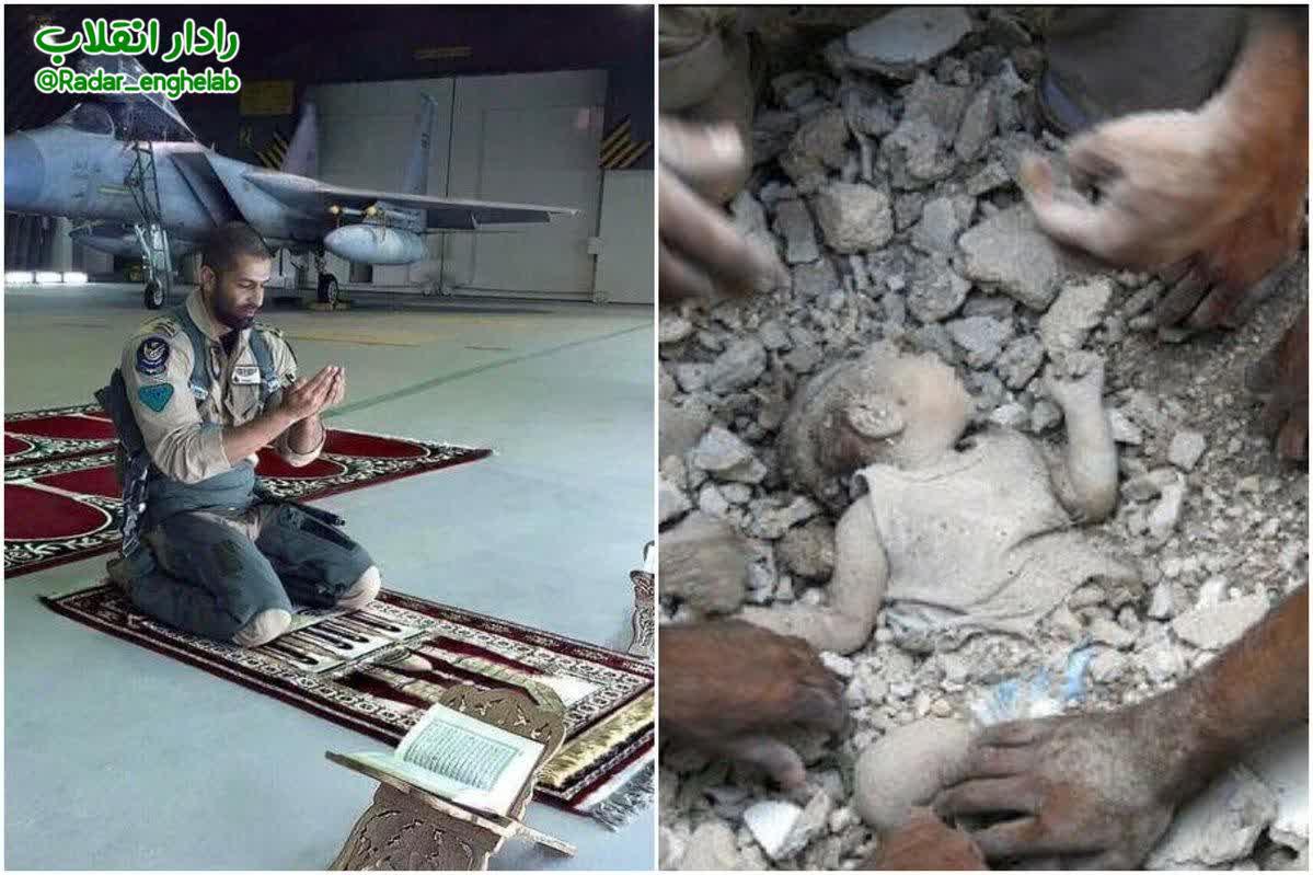 اسلام آمریکایی یعنی خلبان سعودی نماز میخواند تا پرواز کند و کودکان یمنی را به شهادت برساند…