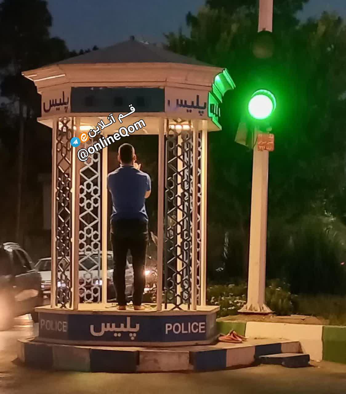 نماز اول وقت یک جوان در جایگاه پلیس، لحظه سبز شدن چراغ راهنمایی ...
