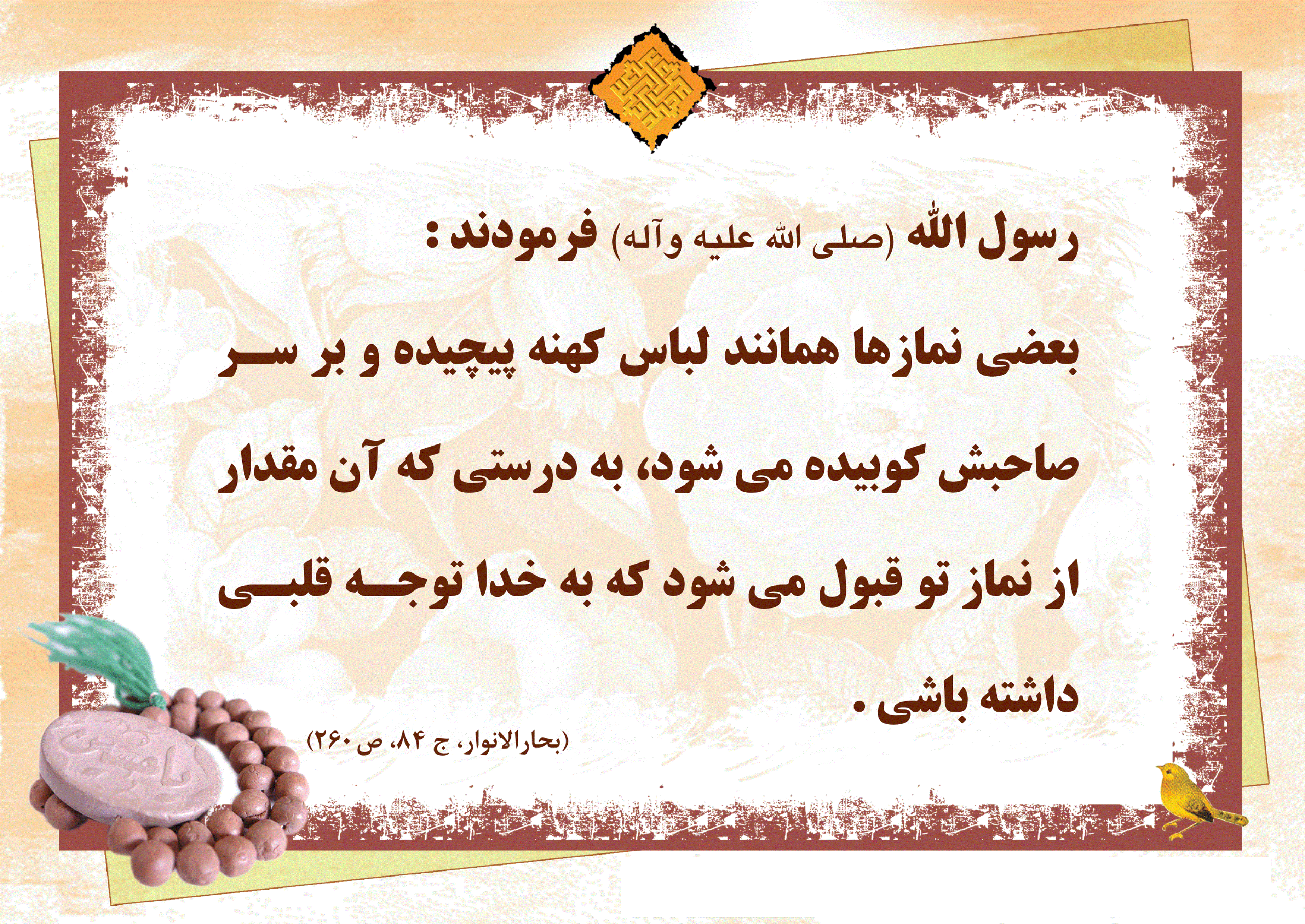 داستان برخی از نمازها مثل کفش میرزا نوروز است که گرفتاری هایش با ما است پس سعی کنیم نماز خود را با دقت اقامه کنیم. و مشمول روایت ذیل نشویم: