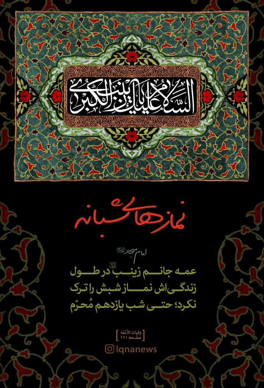 امام سجاد(ع) فرمودند: عمتی زینَب ما تَرکت تَهجدَها طولَ دَهرها حتّی لیلة حادی عشر من المُحَّرم؛ ترجمه عمه جانم زینب در طول زندگیاش نماز شبش را ترک نکرد، حتی شب یازدهم مُحرّم» ...