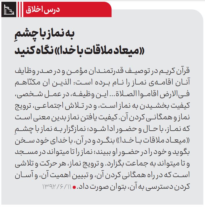 امام خامنه ای؛ نماز میعاد ملاقات با خدا