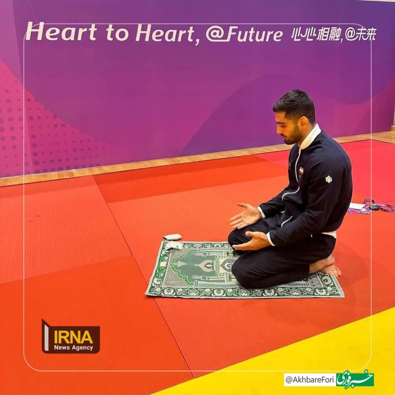 اقامه نماز توسط آقای ابوالفضل محمودی نماینده تیم ملی جودو ایران در نوزدهمین دوره بازیهای آسیایی ۲۰۲۲ در هانگژو