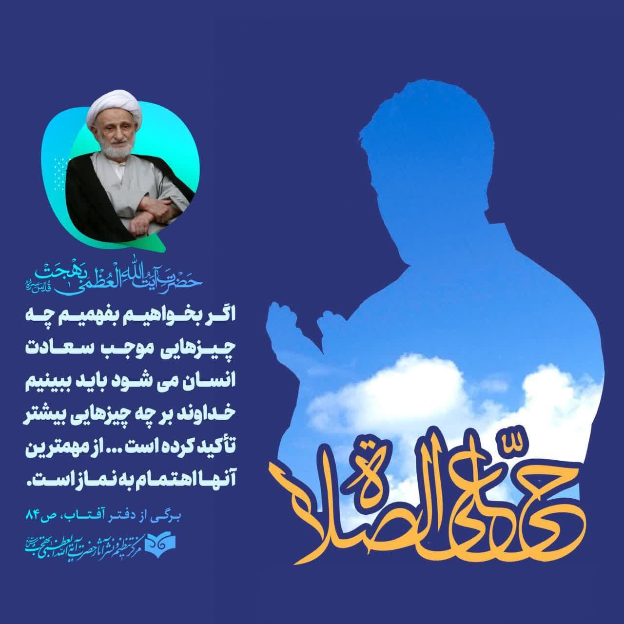 آیت الله بهجت؛ سعادتمندی با نماز حضرت آیتالله بهجت قدسسره: اگر بخواهیم بفهمیم چه چیزهایی موجب سعادت انسان می شود باید ببینیم خداوند بر چه چیزهایی بیشتر تأکید کرده است. ... از مهمترین آنها اهتمام به نماز است. برگی از دفتر آفتاب، ص٨۴ ...