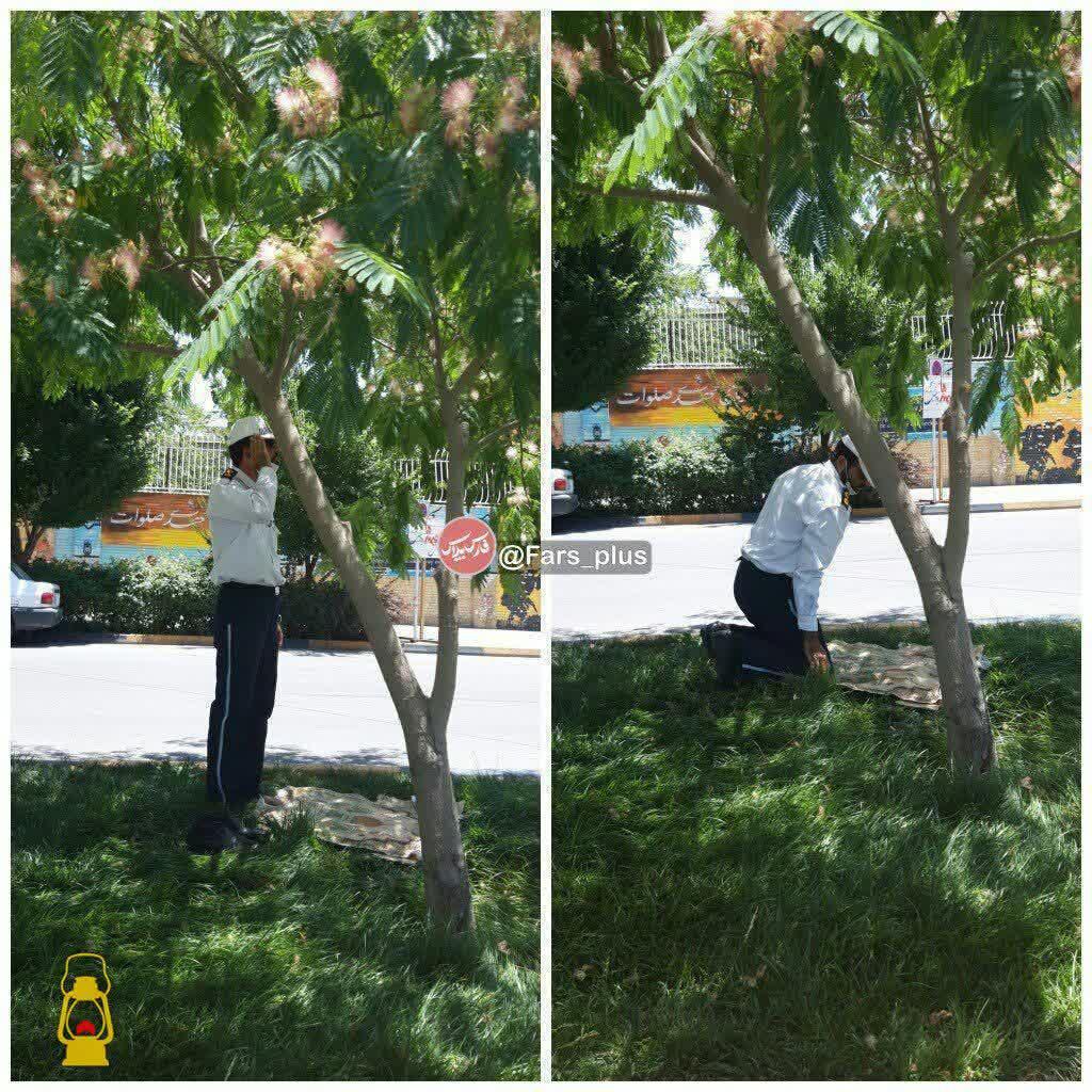 پشت چراغ قرمز بودم موقع اذان ظهر بود.این آقا، خیلی ساده، یه کارتن پهن کرد روی چمنها... جانمازش رو از توی پلاستیک بیرون آورد و پهن کرد روی کارتن... بعد هم وایساد به گفتن اذان با صدای بلند..