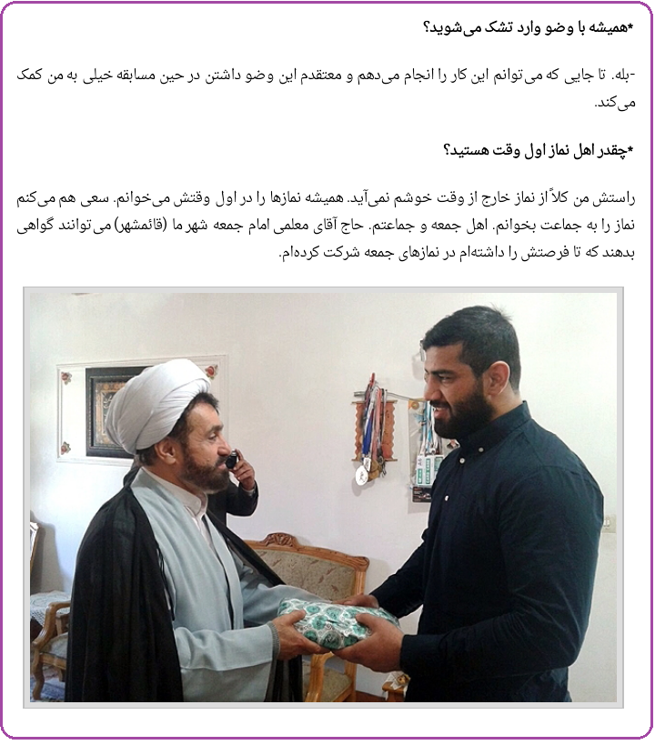اهل نماز اول وقتی که با وضو وارد تشک کشتی می شود