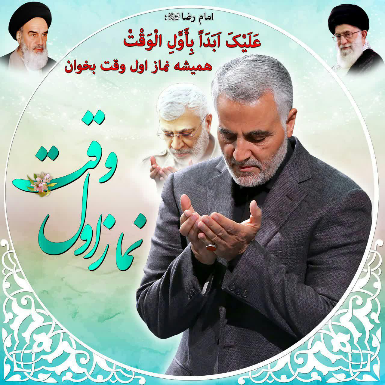 پوستر نماز اول وقت با عکس حاج قاسم سلیمانی